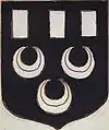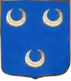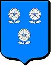 Trois compas ouverts d'argent surmonté d'une couronne, placés deux un sur fond d'azur. |