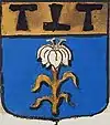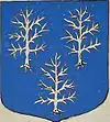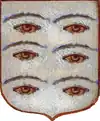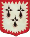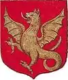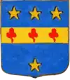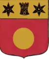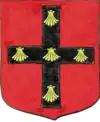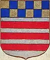 D'or à la croix treflée de sinople ; écartelé d'or au lion de gueules, sur le tout de gueules à deux pals d'or, chargés d'une fasce d'azur, fur chargée de trois losanges d'argent.