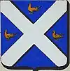 D'azur au sautoir d'or, accompagné de quatre lionceaux, armés & lampassés de gueules. |