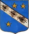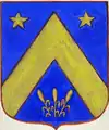 D'azur à un vol d'argent, surmonté de deux étoiles d'or. |