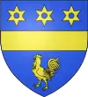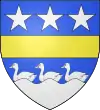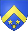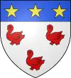 D'argent, à 3 merlettes de gueules ; au chef d’azur, chargé de 3 étoiles d’or