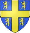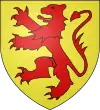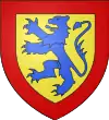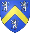 D'azur, au lion d’argent, lampassé et armé de gueules, à deux fasces alésées et brochantes du même.[8] |