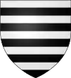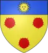 Burelé d'or et d'azur (de dix pièces), au chef du second, chargé de trois soleils du premier.[8],[18],[14],[19],[20] |