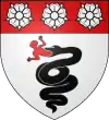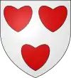 D'argent, au chevron de gueules, accompagné de 3 roses d’argent Il existe aussi : De gueules au chevron d’or, accompagné de 3 roses d’argent |