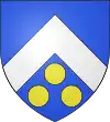 D'azur, au chevron d’argent, accompagné en pointe d’un besant d’or