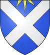 D'azur, au sautoir d’argent, accompagné de trois rayons de soleil d’or, issants du chef |