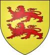 D'azur au lion d'or.[41] Alias au lion d'or, les pattes de devant posées en sautoir, la queue passée entre les jambes.[42]