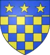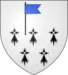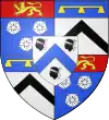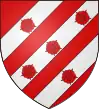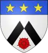 D'azur, à trois étoiles à six rais d'or ; au chef cousu de gueules ; et pour brisure, un orle d'argent chargé de onze tourteaux de sable.[1] |