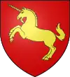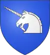 D'azur, au chevron d'or, accompagné de trois licornes d'argent saillantes, 2 et 1.[1] |