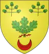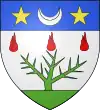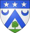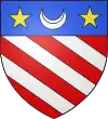 D'or, au chevron de sable, accompagné d'un croissant de gueules en pointe ; au chef d'azur chargé de trois étoiles d'argent.[1] |