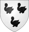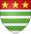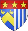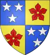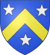 Parti : au 1, d'azur, au chevron d'or accompagné en chef de deux merlettes du même ; au 2, d'argent à trois pals de sable ; au chef de gueules brochant sur le tout, et chargé de trois étoiles d'or.[1] |