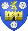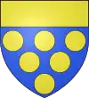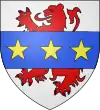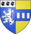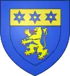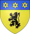 D'azur, au lion d'or armé et lampassé de gueules, au chef d'or chargé de trois molettes d'azur ; à la bordure de même.[1] |