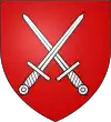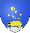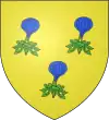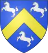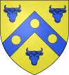 D'azur, à deux épis d'or ; au chef de gueules, chargé de trois molettes d'éperon d'argent.[1] |