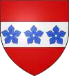 Fascé ondé d'argent et de gueules, à six pièces ; au chef d'azur chargé de trois fleurs de lys d'or.[1] |