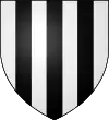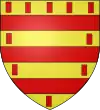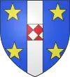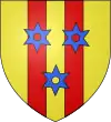 D'or, à deux pals de gueules et trois molettes d'azur, superposées au milieu de l'écu.[1] |