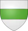 D'argent, au verne de sinople, accosté de deux étoiles d'azur.[1] Alias au verne de sinople, au chef de gueules à trois étoiles d'argent. |