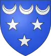 D'azur, à deux croissants tournés l'un à dextre l'autre à senestre, entrelacés d'or et surmontés d'une étoile de même.[1] Alias l'étoile surmontée d'un tourteau de gueules. |