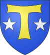 D'azur, à trois taus d'or, 2 et 1, et trois étoiles d'argent, 2 et 1.[1] |