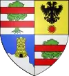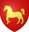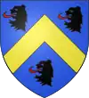 D'azur, au chef d'or.[1] Alias écartelé ; aux 2 et 3 d'or à un lion de sable armé et lampassé de gueules, au chef échiqueté d'argent et de gueules de trois traits. |