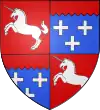 Écartelé : aux 1 et 4, d'azur, au lion d'or, armé et lampassé de gueules ; aux 2 et 3, de gueules au besant d'argent.[1] Alias d'azur au lion d'or, armé et lampassé de gueules, rampant contre une tour d'argent, crénelée, ajourée et maçonnée de sable, posée à dextre. |