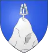 D'azur, au rocher d'or en pointe, accosté de deux merlettes de même.[1] Alias au chef d'argent chargé d'un croissant d'azur accosté de deux étoiles de même. |