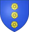 D'azur, à trois roses d'argent surmontées d'un soleil rayonnant d'or.[1] |