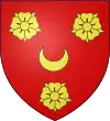 D'azur, au croissant d'or, accompagné en pointe de deux étoiles du même en fasce ; au chef d'or, chargé de trois roses de gueules.[1] Alias écartelé d'azur à un sautoir d'or (qui est de Laudun). |