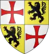 écartelé, au 1 et 4 d'argent à la croix pattée de gueules et au 2 et 3 d'or, au lion de sable, au lambel de cinq pendants de gueules, brochant sur le tout[13]. |