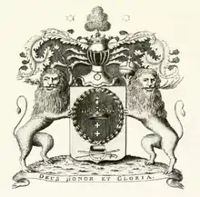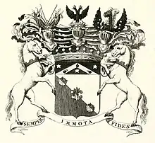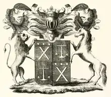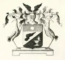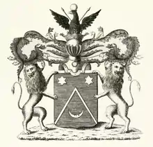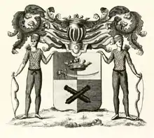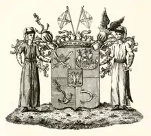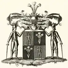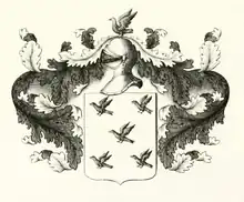 Liste des blasons (et des noms[27] de famille concernées) enregistrés[28], listés selon l'ordre alphabétique romain[29].