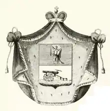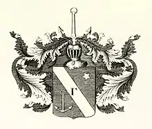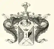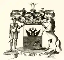 Archenievski ou Archeniesky ; olim Archeniefsky[57] Ancienne noblesse, attestée depuis 1654[58] ; d'origine lituanienne, principalement implantée à Smolensk et Tchernigov ; a fourni un grand nombre de hauts fonctionnaires de l'Empire. Illustrée notamment par Isaïe Zakhariévitch († 1787), gouverneur de Smolensk, son fils Pierre Isaïévitch (ru) († 1803), lui aussi gouverneur de Smolensk, le général Jacques Stepanovitch (ru) († 1771), gouverneur de Nijni Novgorod, le général Nicolas Yakovliévitch (ru) (1743-1802), gouverneur d'Astrakhan et de Smolensk, son frère Pierre Yakovliévitch (1748-1811), gouverneur de Moscou, et le mathématicien Vassili Kondratiévitch (ru) (1758-1808). Pour défaut de descendance masculine, l'Empereur Alexandre Ier autorisa (décret du ) le lieutenant Ilya Gorodetsky, issu d'une famille l'ancienne noblesse de Smolensk, à relever les nom et armes de Pierre Yakovliévitch, d'où postérité. |