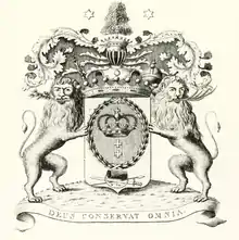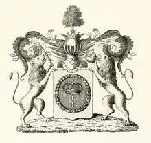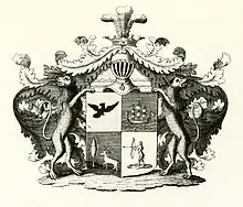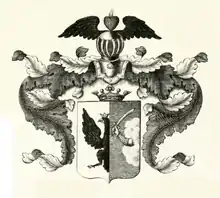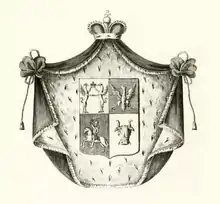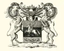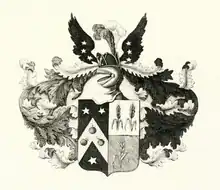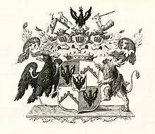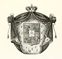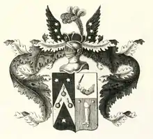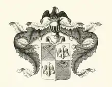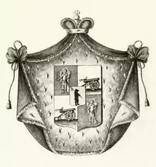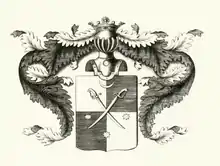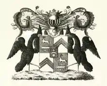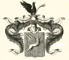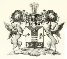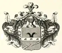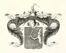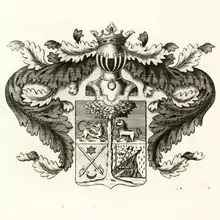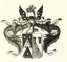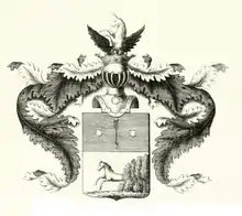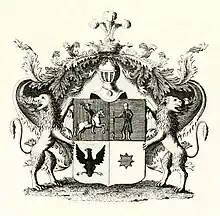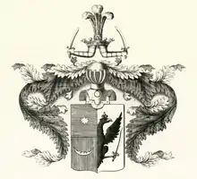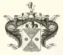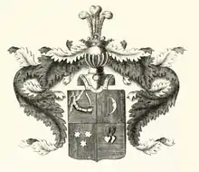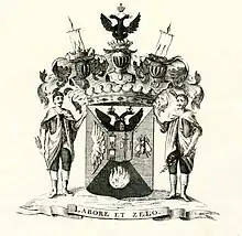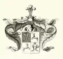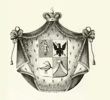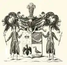 - Nés hors mariage, fruits de son union illégitime avec la française Catherine Imbert (Екатерина Любимовна Эмбер) († 1809) ; le diplomate les reconnut rapidement (les armes ici présentées sont justement celles qui leur furent attribuées en 1790).