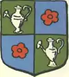 écartelé de sinople à une aiguière d'argent et d'azur à une rose de gueules.[12] |