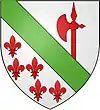 d'azur à deux chevrons d'or accompagnés en chef d'une croisette du même, en pointe d'un lion d'or issant armé et lampassé de gueules. (Il s'agissait auparavant d'un seul chevron croiseté)[12] |