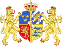 Depuis 1280 : de gueules, au lion couronné d'or, tenant dans ses pattes une hache d'argent, emmanchée d'or (maison Sverre). |