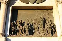 En , le cardinal Guido parvient à réconcilier Arnaud de Brescia avec le pape Eugène III. Arnaud est alors envoyé par le pape en pèlerinage pénitentiel à Rome[2]. Il s'allie rapidement avec les insurgés et reprend sa prédication contre le pape et les cardinaux[2]. Selon lui, « un pape qui emploie les armes pour défendre son pouvoir temporel, n'est plus un pasteur des âmes mais un bourreau de l'église », et perd, par conséquent, « tout droit à notre respect et notre obéissance[9] ». Menant une double réforme, à la fois politique et religieuse, Arnaud rétablit le tribunat et restaure l'ancien ordre équestre[10]. Il veut fonder à Rome un régime communal indépendant, déposséder le pape de sa seigneurie temporelle, et couronner sur le Capitole la royauté du peuple[11]. Il est excommunié par le pape Eugène III en [12], mais son agitation vitalise la révolte contre le Saint-Siège et il contrôle bientôt les Romains, attirés par son caractère austère et son mode de vie ascétique[2].