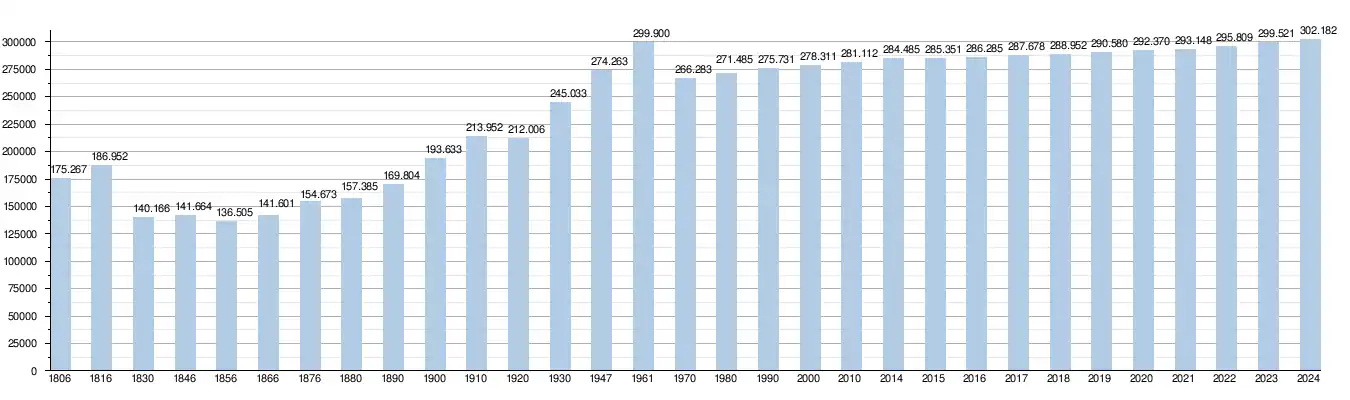 Il comptait, au , 272 711 habitants (150 042 hommes et 152 669 femmes), soit une densité de 676,92 habitants/km²[2] pour une superficie de 402,87 km².