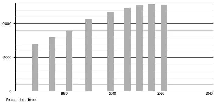 - Population municipale légale en vigueur au 1er janvier 2024, millésimée 2021, définie dans les limites territoriales en vigueur au 1er janvier 2023, date de référence statistique : 1er janvier 2021.