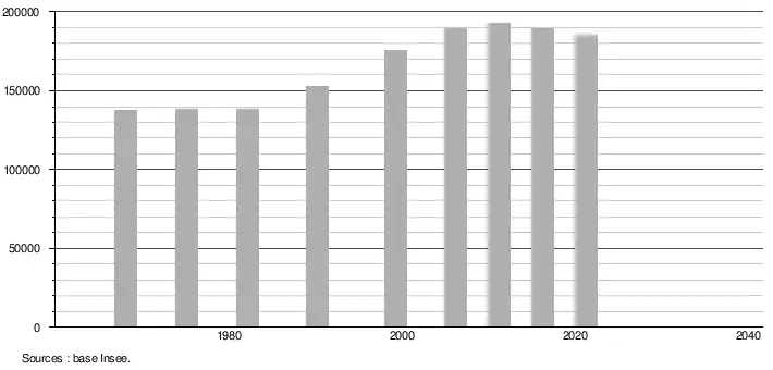 (Sources : Base Insee, population sans doubles comptes à partir de 1962[2] puis population municipale à partir de 2006[3].)