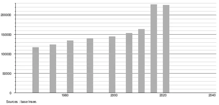 (Sources : Base Insee, population sans doubles comptes à partir de 1962[2] puis population municipale à partir de 2006[3].)