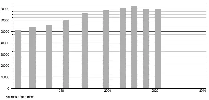 1. Population municipale légale en vigueur au 1er janvier 2024, millésimée 2021, définie dans les limites territoriales en vigueur au 1er janvier 2023, date de référence statistique : 1er janvier 2021.