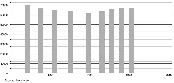 - Population municipale légale en vigueur au 1er janvier 2024, millésimée 2021, définie dans les limites territoriales en vigueur au 1er janvier 2023, date de référence statistique : 1er janvier 2021.
