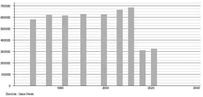 - Population municipale légale en vigueur au 1er janvier 2024, millésimée 2021, définie dans les limites territoriales en vigueur au 1er janvier 2023, date de référence statistique : 1er janvier 2021.