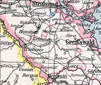En 1939, l'arrondissement de Grimmen comprend trois villes et 64 autres communes :