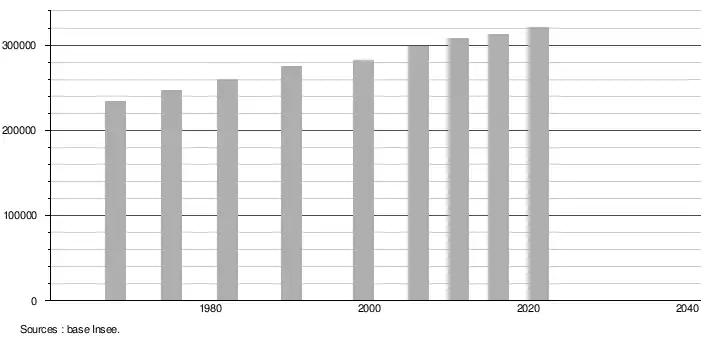 - Population municipale légale en vigueur au 1er janvier 2024, millésimée 2021, définie dans les limites territoriales en vigueur au 1er janvier 2023, date de référence statistique : 1er janvier 2021.