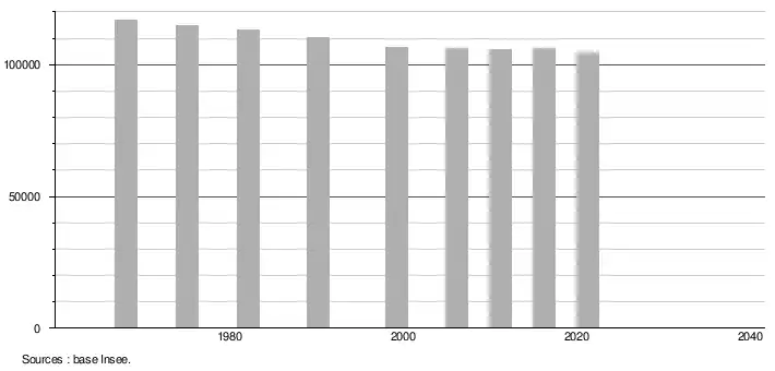 - Population municipale légale en vigueur au 1er janvier 2024, millésimée 2021, définie dans les limites territoriales en vigueur au 1er janvier 2023, date de référence statistique : 1er janvier 2021.