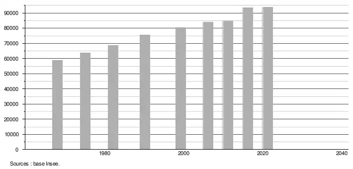 - Population municipale légale en vigueur au 1er janvier 2024, millésimée 2021, définie dans les limites territoriales en vigueur au 1er janvier 2023, date de référence statistique : 1er janvier 2021.