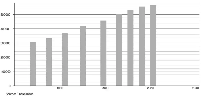 - Population municipale légale en vigueur au 1er janvier 2024, millésimée 2021, définie dans les limites territoriales en vigueur au 1er janvier 2023, date de référence statistique : 1er janvier 2021.