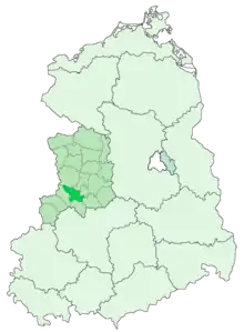 Le 25 juillet 1952, il y a une réforme administrative globale en RDA, au cours de laquelle, entre autres, les États de la RDA perdent leur importance et de nouveaux districts sont créés. L'ancien arrondissement de Wanzleben donne des communes aux arrondissements d'Halberstadt (de), Oschersleben (de) et Staßfurt (de). Le nouveau arrondissement de Wanzleben, basé à Wanzleben, est formé à partir de la zone d'arrondissement restante avec des parties des arrondissements d'Haldensleben et Wolmirstedt. Le district est affecté au district nouvellement formé de Magdebourg[1].