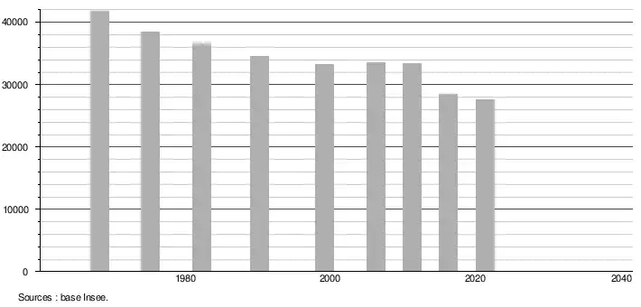 - Population municipale légale en vigueur au 1er janvier 2024, millésimée 2021, définie dans les limites territoriales en vigueur au 1er janvier 2023, date de référence statistique : 1er janvier 2021.
