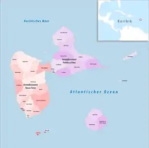 En 1946, la Guadeloupe devient département d'outre-mer avec trois arrondissements : Basse-Terre, Pointe-à-Pitre, Saint-Martin-Saint-Barthélemy.